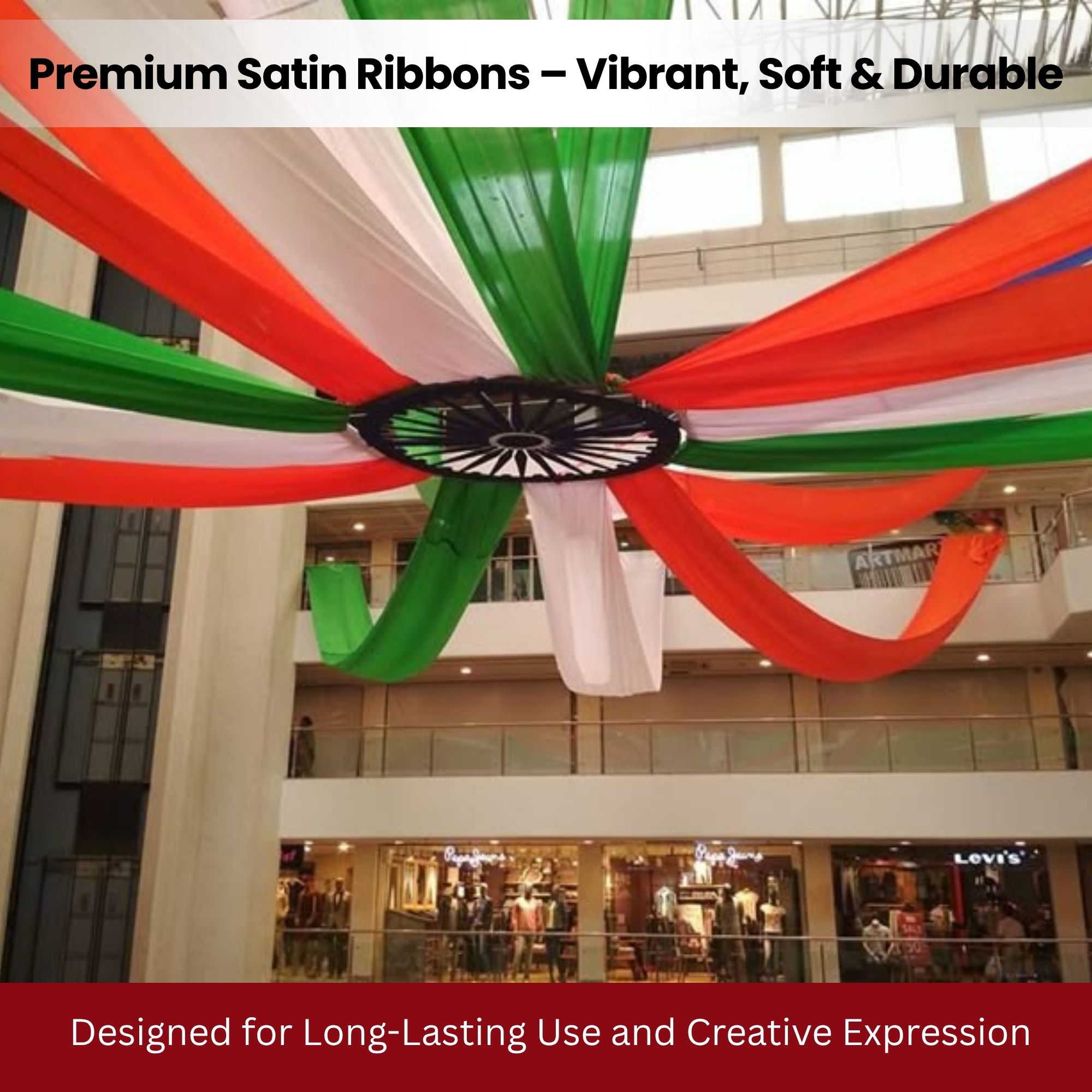 Each ribbon is crafted from high-quality satin fabric, offering a smooth, glossy finish perfect for decorating gifts, classrooms, event halls, and parade venues.